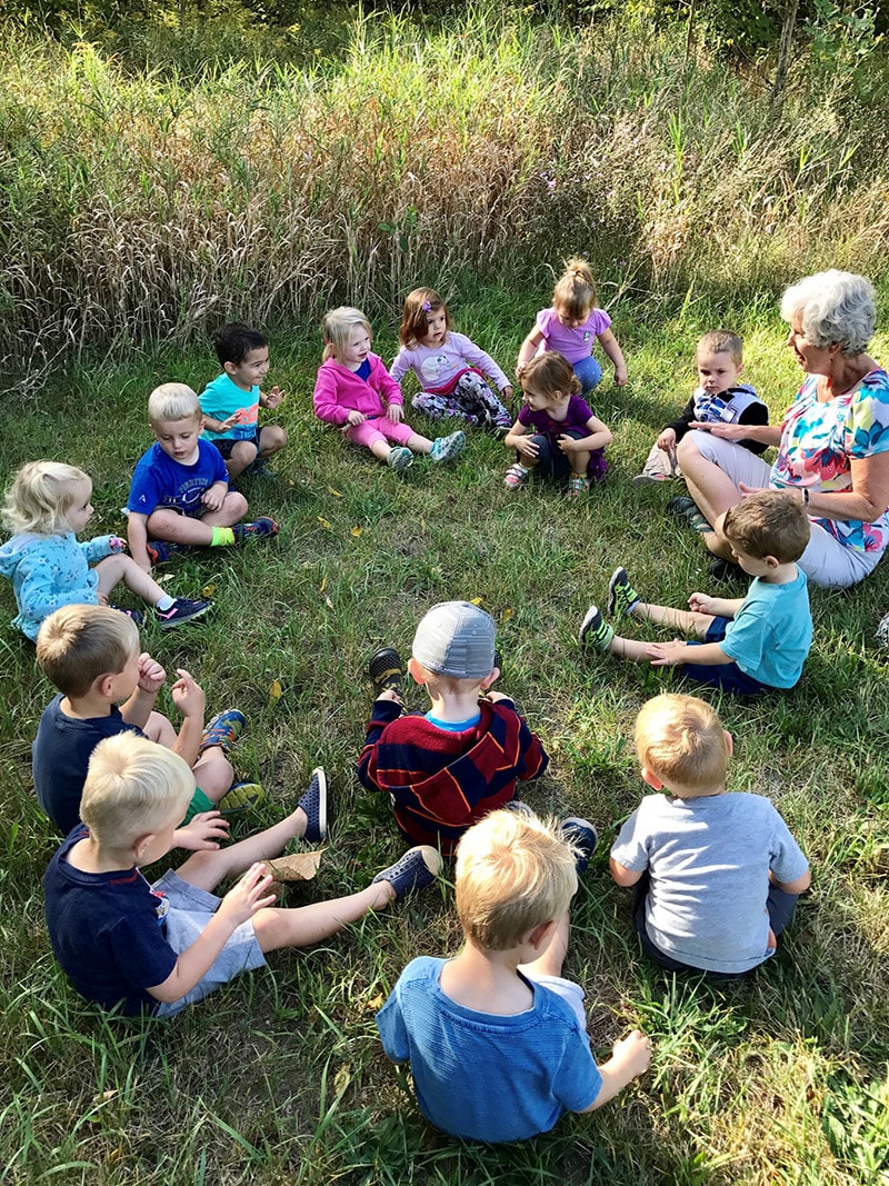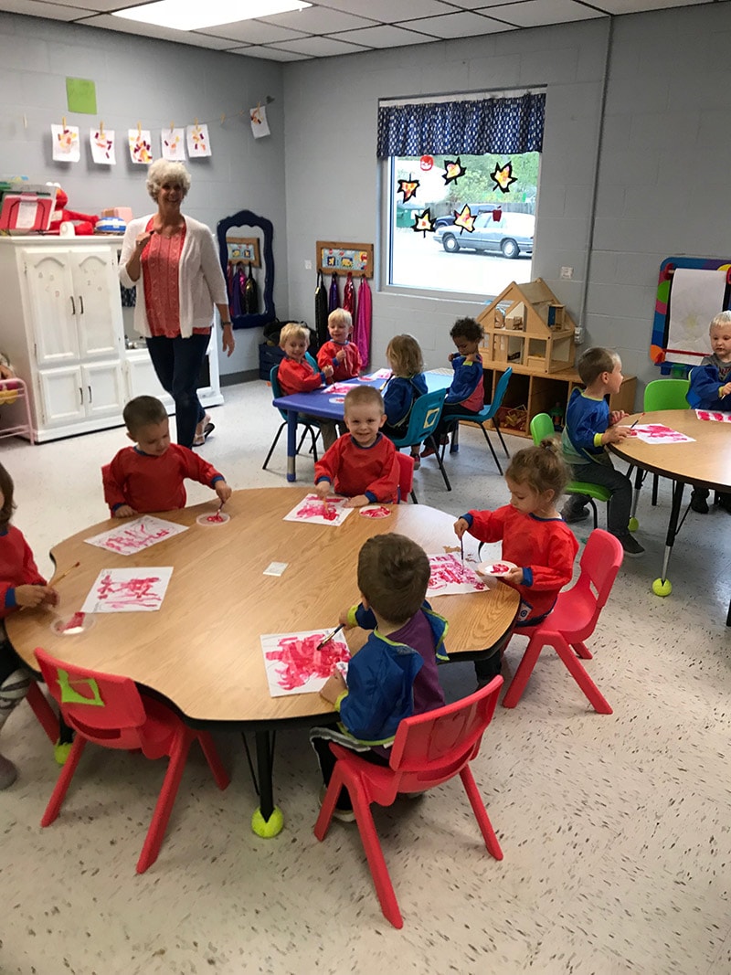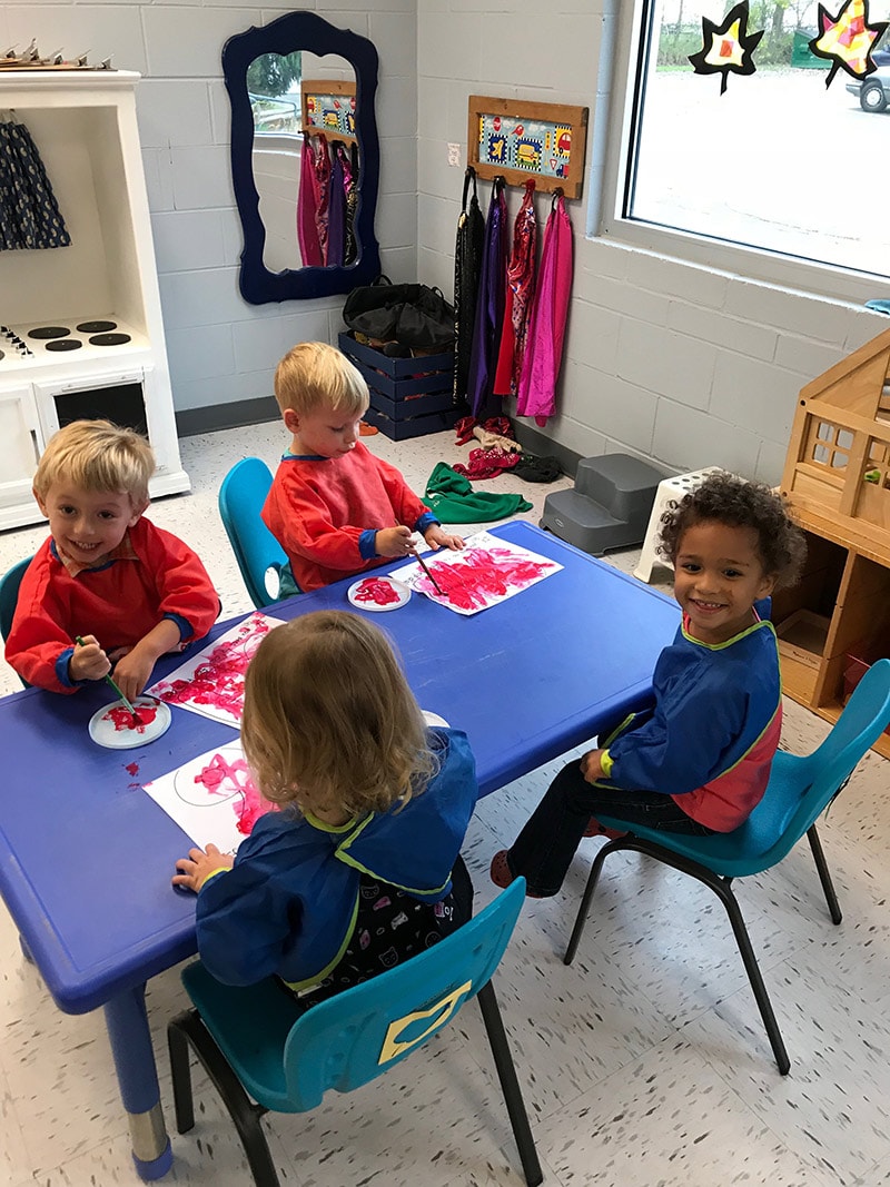Our preschool classroom will prepare your little scholar for the years ahead. We’ve designed a dedicated space for our kiddos to continue their development as more structure and routine are introduced. We have 3 outdoor play and exploration times daily. Children continue with potty training, which is also a learning time with stories and music! Children are encouraged to explore and express themselves through art, music, imaginative role-play, games, crafts and more.
